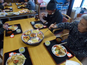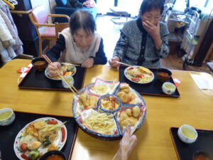 普段は小食な利用者様も菜箸を手にとり、好みのおかずを沢山召し上がって下さりました😋