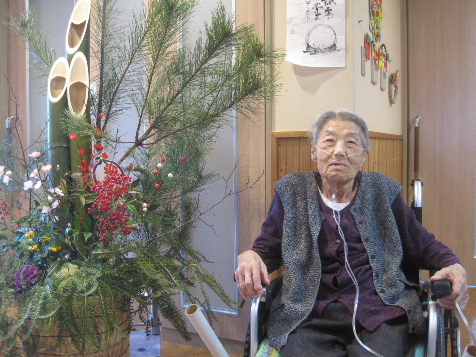 新年行事 獅子舞 これ職員お手製の獅子舞です(^^)/利用者と一緒に記念撮影 全然怖がらなかった( ゚Д゚)「昔は家に回ってきたね」って昔の話をしながら、おみくじを楽しんでいます