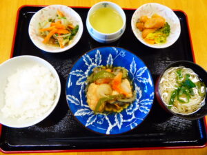 今日は、短期入所のかたの、月に一度の交流スペースでのお食事です。