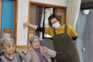 看護師さんと一緒に体を動かそう(^^)/ 寒い日が続きます。運動不足にならないように音楽に合わせて手を動かしましょう。